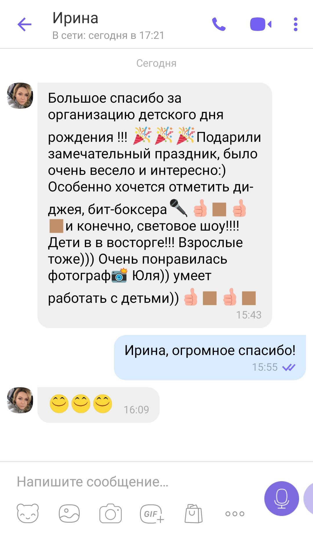 - Как мне узнать, что мою заявку приняли?На следующий день после оформления заявки до 19.30 с вами свяжется наш менеджер и подтвердит получение заявки. Менеджер уточнит все необходимые данные и ответит на все Ваши вопросы. Внимание, мы работаем без предоплаты. Вы оплачиваете в день праздника нашему аниматору или координатору праздника.